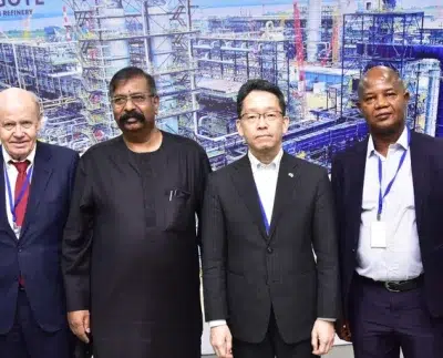 L-R: Trade Commissioner/ Managing Director, JETRO, Takashi Oku; Group Executive Director, Dangote Cement Plc, Knut Ulvmoen; VP, Oil & Gas, Dangote Industries Limited, Devakumar Edwin; Ambassador - Designate of Japan to Nigeria, Suzuki Hideo; Director of Service, Yokogawa Nigeria Limited, Olushola Olanlehin.