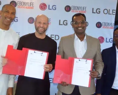 L-R: GM, Ebonylife Place, Mr. Michael Williams, Head of the Ebonylife Creative Academy, Mr. Drikus Volschenk, Head Corporate Marketing, LG Electronics, Hari Elluru, Marketing Manager, LG Electronics, Mr. Paul Mba.