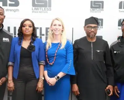 Beneficiary of Global Educator Program, Olayinka Adeosun from Ilupeju Junior Grammar School; Director of Sustainability, IHS Nigeria, Titilope Oguntuga; Executive Director, Limitless Space Institute, Kaci Heins; Chief Corporate Services Officer, IHS Nigeria, Dapo Otunla and Beneficiary of the Global Educator Program, Maranatha Haa, FGC, Jos.